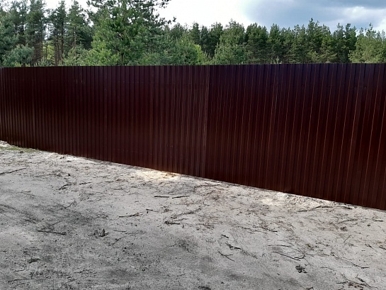 забор из профнастила с утрамбованным щебнем 100 метров