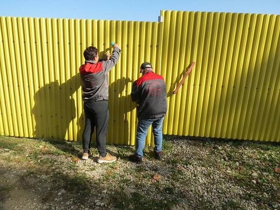 Забор из профнастила с утрамбовкой щебнем 122 метра