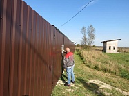 Забор из профнастила с утрамбовкой щебнем 98 метров