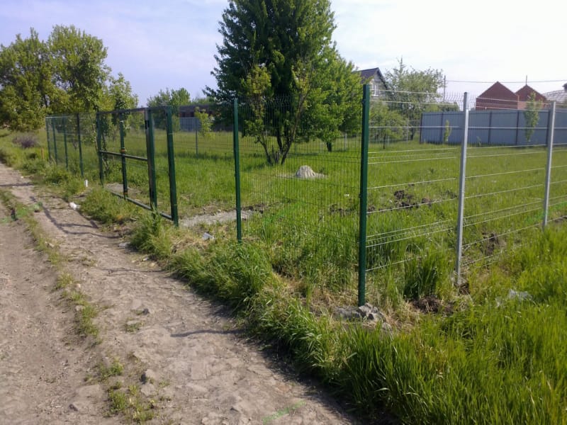 Прутки для забора изготавливаются из оцинкованной стали с полимерным покрытием. Стандартный цвет изделия – зеленый, но при желании можно заказать окрашивание в любой цвет палитры RAL. Пруток может иметь разную толщину, а также можно варьировать прочностные характеристики, меняя размер ячеек ограждения. Готовые сварные секции крепятся к опорным металлическим столбам из трубчатого профиля квадратного или прямоугольного сечения.